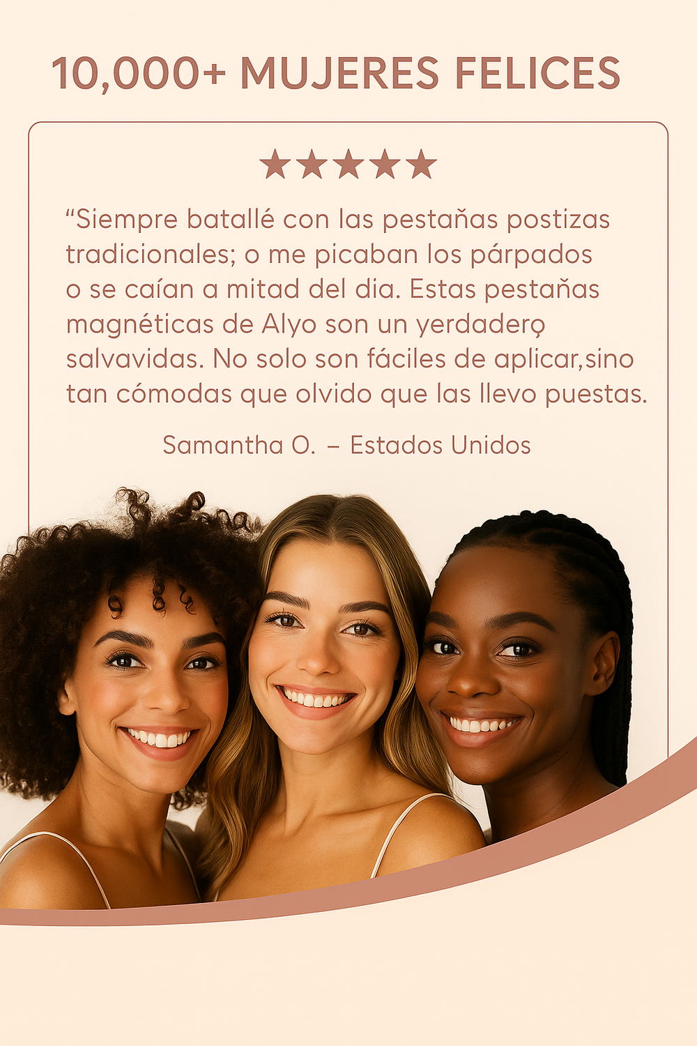 Eleva tu mirada al instante con las Pestañas Magnéticas Alyo™, diseñadas para darte un acabado glamoroso sin esfuerzo. Su tecnología de microimanes ultrafinos permite una aplicación rápida y precisa, sin pegamento, sin residuos y sin irritación.